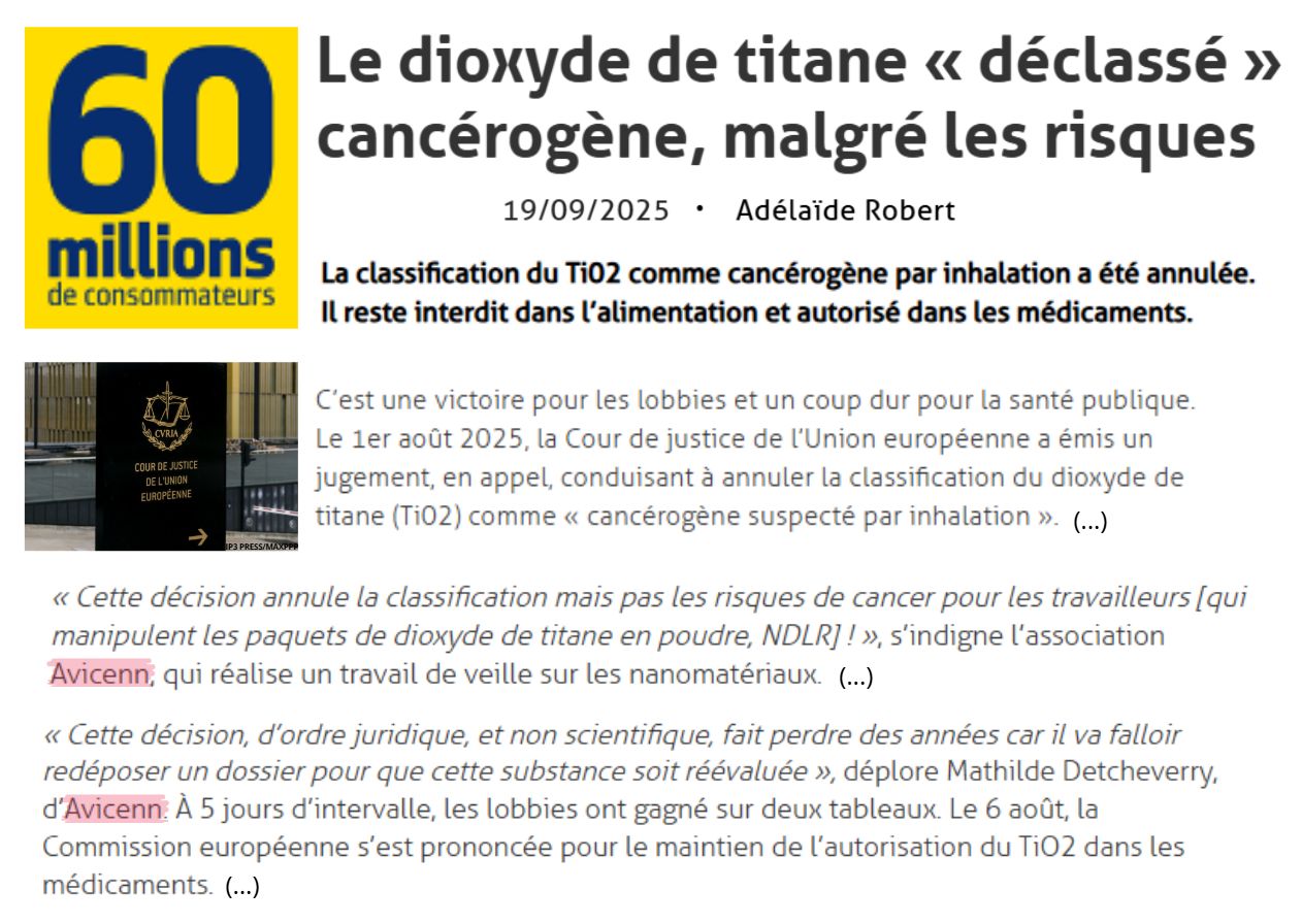 - European and international press: Chemical Watch, RFI, BBN World News, The National Law Review, Food Navigator, California 18, Il Salvagente, Il Ssusidario, Psychomédia, RTBF, …